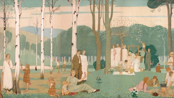 Ilustracija žene u prirodi.