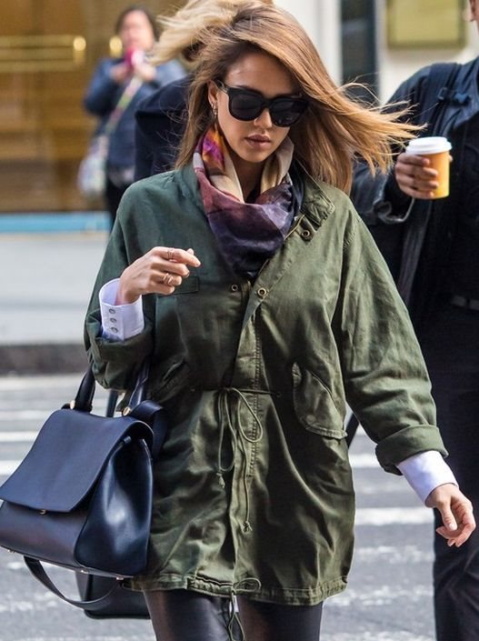 Proverena kombinacija crne i maslinasto zelene nikada ne može da omane i izađe iz mode. Još ako se to odnosi na crne, kožne pantalone i dužu parku, onda vam je kao nadogradnja dovoljna svilena marama i salonke u vrištećoj, neon narandžastoj boji.