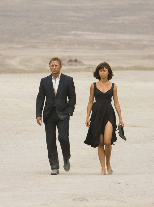 Nekoliko godina posle Olga Kurylenko u ulozi nesmotrene Camille u nastavku "Quantum of solace" zadavala je Danielu Craigu previše glavobolja sve dok nije stala na njegovu stranu u crnoj Pradinoj haljini u pustinjskoj sceni. Ta midi haljina i crne salonke s potpisom brenda Gina Paris još su jedan Bondov modni trenutak za sećanje..