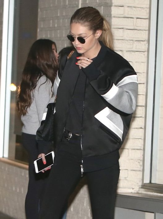 Ovoga puta Gigi smo videli na ulicama Los Anđelesa u crnim farrmericama, Converse starkama, Saint Laurent torbi i fantastičnoj crno-beloj bomber jakni. Casual, sporty, minimal i trendi.