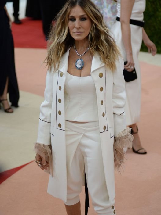 Naime, belo odelo brenda Monse glumica je iskombinovala s plavim salonkama iz sopstvene kolekcije koje neodoljivo podsećaju na poznate Manolice kojima je Zverka zaprosio Carrie, dok je kompletan look upamćen kao još jedna situacija u kojoj je SJP teško odvojiti od njene najpoznatije uloge.