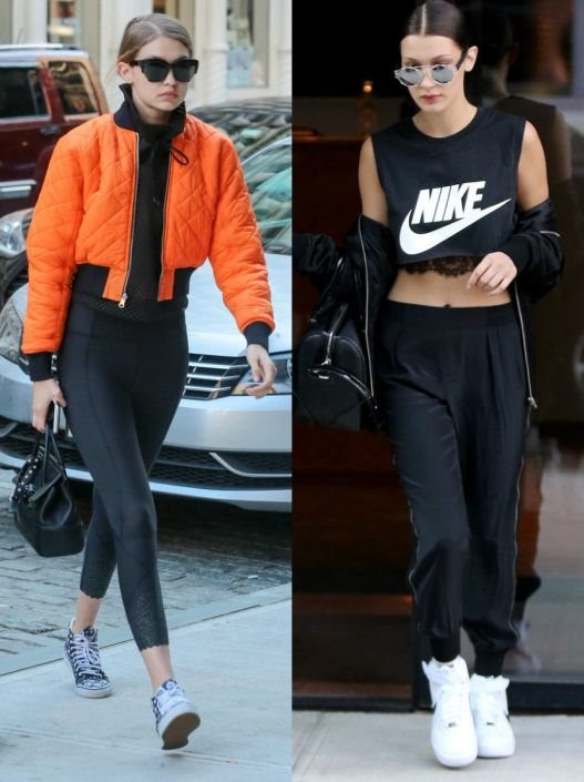 Sestre Hadid spadaju definitivno u dame koje obožavaju sportske komade i često ih nose van teretane pokazujući svoje vitko, manekensko telo. Dok je Gigi fan jarkih boja, Bella se drži proverene crno-bele palete.