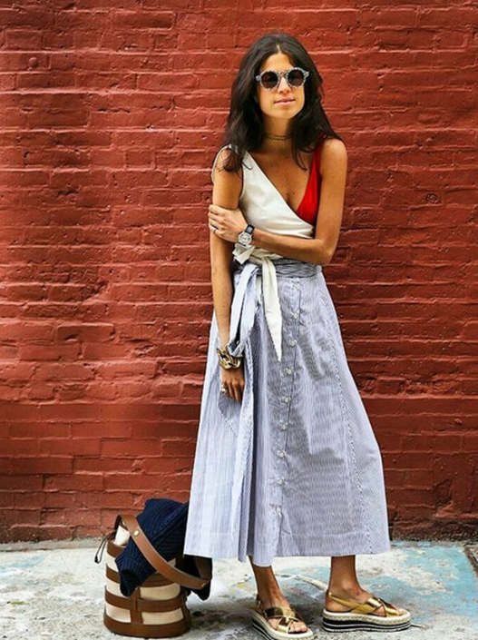 Odevni komadi spuštenih ramena izuzetno su popularni ove letnje sezone, ali ne morate ih stilizovati na način na koji to rade svi ostali. Odličan ćete efekat postići ako off shoulder bluzu iskombinujete s haljinom tankih bretela, posebno9 ako su sličnog dezena.