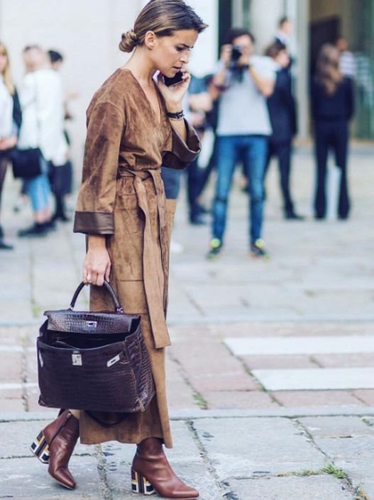 Radi se o savršenom dugačkom kaputu od prevrnute kože u smeđoj boji koji je Miroslava uparila sa zanimljivim poludubokim čizmicama Gabriele Hearst, dizajnerke čiju torbu ne pušta iz ruku.