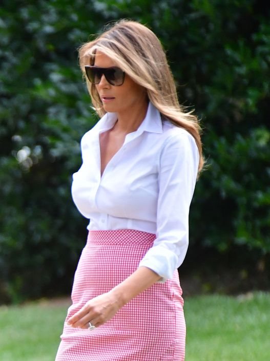 Naime, za ovu priliku Melania je belu košulju uvukla u usku, karo crveno-belu Altuzarra suknju. Isticanje vitke figure je pojačano njenim omiljeni aksesoarom Christian Louboutin salonkama, samo što su ovog puta bile bele u pitanju.