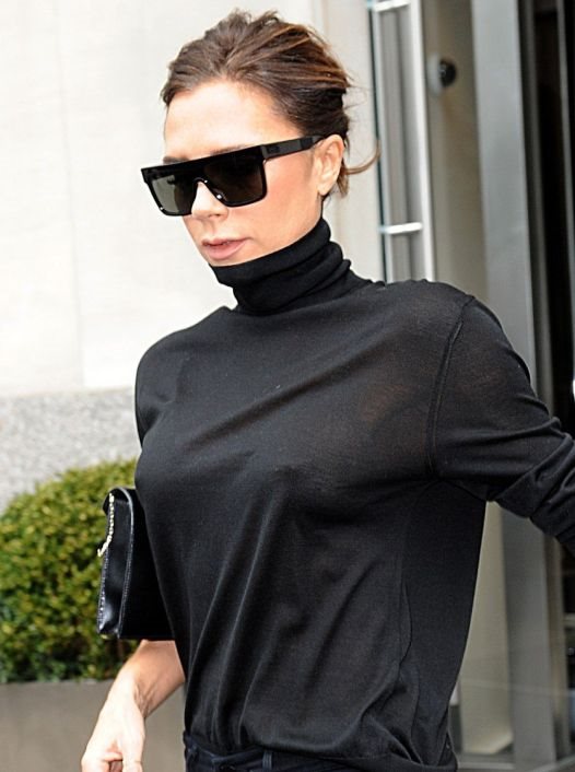 Nešto kasnije tog istog dana, Vicky je zapažena u jednostavnoj kombinaciji tamnog skinny jeansa i crne rolke tri četvrt rukava, dok je izgled nadograđen smelim kratkim čizmicama na štiklu u svetloj mint boji.