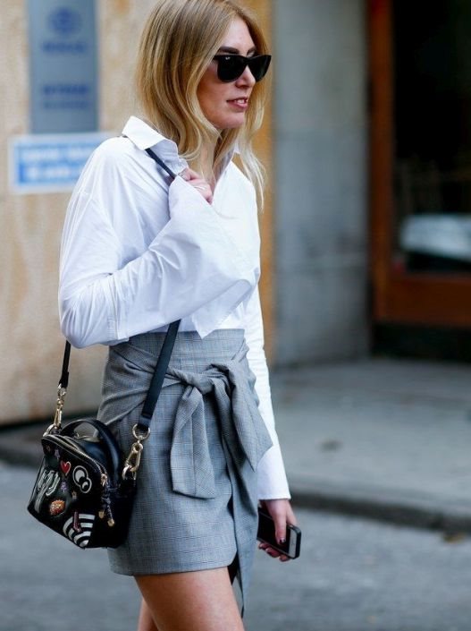 Oversized košulja u beloj boji svoju atraktivnost u najvećoj meri iskazuje ukoliko se mudro kombinuje sa ostatkom stajlinga, a vezivanje u čvor na ovom modelu jedan je od omiljenih trikova trendseterki. Učite od njih.