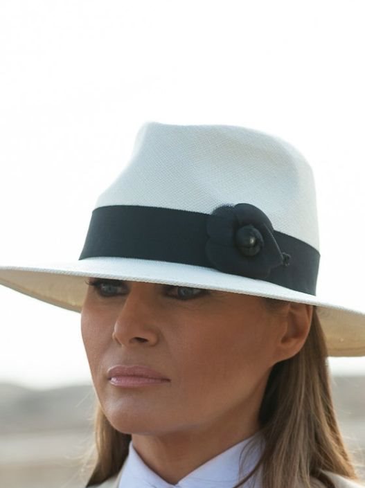 Supruga Donalda Trumpa u Gizi se fotografisala pred Sfingom u bež sakou, beloj košulji, crnoj kravati, krem pantalonama i sa šeširom prikladne boje. Reakcije koje su usledile čine da joj ovaj look postane najveći modni gaf nakon zelene jakne na kojoj je pisalo "Baš me briga. A vas?" koju je obukla za posetu granici sa Meksikom.