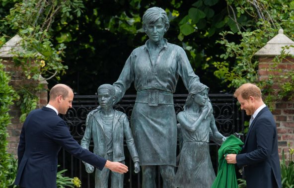Nakon turbulentnog perioda za kraljevsku porodicu, intervjua vojvode i vojvotkinje od Saseksa kod Oprah Winfrey, braća su se ponovo okupila u Potopljenom vrtu Kensingtonske palate - omiljenom mestu njihove majke, da bi joj odali počast i prikazali velelepnu statuu. Njima su se pridružila princezina najuža porodica, Earl Spencer, Lady Sarah McCorquodale i Lady Jane Felloves.