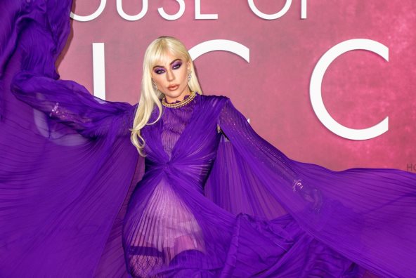 Film je sinoć konačno doživeo svoju svetsku premijeru u Londonu, a Gaga je još jednom briljirala. Na crvenom tepihu pojavila se u glamuroznoj Gucci kreaciji koja je u sklopu najnovije kolekcije za proleće 2022. prvi put prikazana prošle nedelje na reviji Love Parade. Ljubičastu haljinu iza brenda Gucci dizajnirao je Alessandro Michele.