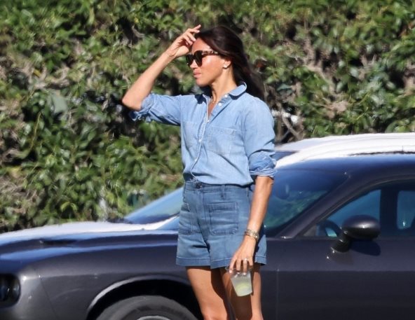 Kako bi navijala za princa Harryja tokom polo utakmice, Meghan je ponela Dôen teksas šorts i oversize teksas košulju, potvrđujući da je najistaknutija kraljevska zagovornica teksasa (podsetimo se samo da je za svoje prvo pojavljivanje sa princom Harryjem na Invictus Games 2017. godine odabrala iscepani jeans, skinny modela).