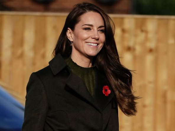Kate Middleton je na nedavnom službenom posetu dečjem centru u Middlesexu odabrala elegantan model u zelenoj boji koji je nosila u kombinaciji s kaputom i pojasom slične nijanse.