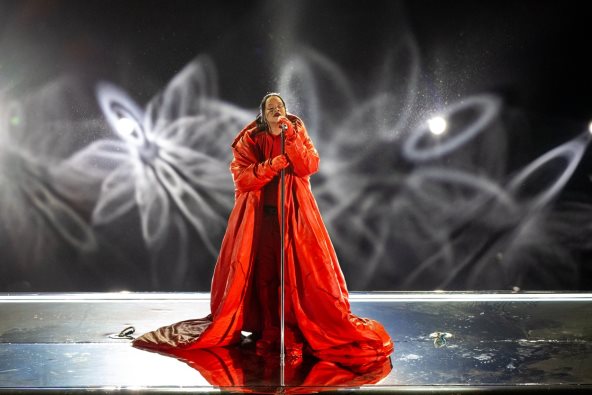 Zvezda sa Barbadosa sinoć je nastupila u poluveremenu Super Bowl-a u crvenom kombinezonu. Tokom izvođenja pesme "Diamonds" dok je stajala na lebdećoj platformi, Rihanna je otkopčala jaknu, pomazila svoj stomak i na taj način otkrila vest da je ponovo trudna.