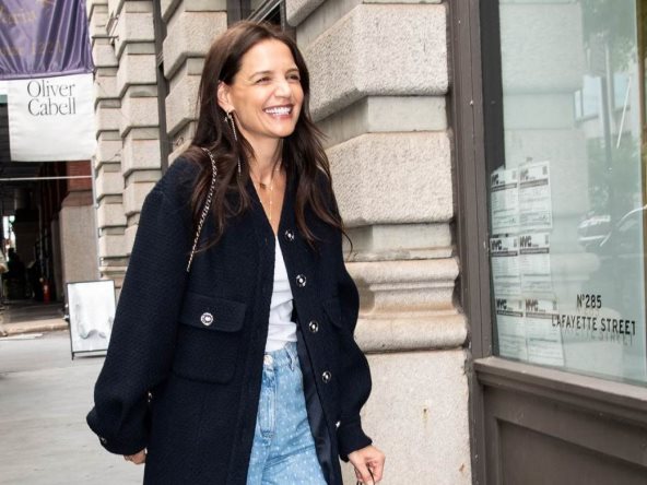 CHANEL Tribeca Festival Women's svečani ručak bio je povod za još jedan sjajan outfit. Odevena u pomenuti brend od glave do pete, Katie je demonstrirala kako se kreira ležeran, a chic stil za proleće. Umesto haljine ili odela od tvida, Katie se odlučila za "mom jeans" model sa tufnama i kultnim logoom.