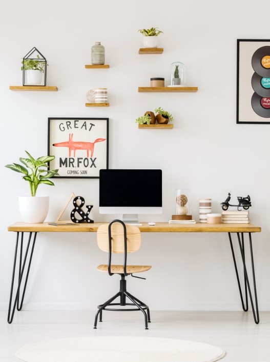 Nije tajna da je skandinavski stil omiljeni kod uređenja enterijera milenijalaca. Ukoliko ste se odlučili za ekstravagantnu stolicu, pravi balans u dizajnu napravićete sa radnim stolom modernog, čistog i jednostavnog dizajna. Predlog su veliki beli drveni stolovi koji će ostaviti sasvim dovoljno prostora za detalje, priručnike i sredstva za rad, tako da ne izgleda sve suviše natrpano i neuredno.