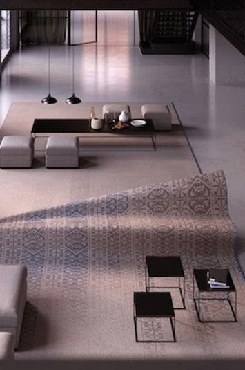 Prekriven velikim tepihom, neobični kauč se čini samo nastavkom poda, a celokupni utisak je estetski vrlo privlačan i čist. Dodatno, kauč ima još jednu funkcionalno dekorativnu dimenziju, a to je naizgled skrivena polica za knjige.