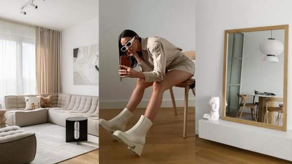 Stanom dominira skandinavski stil, zatim, kao što sam spomenula, mnogo prirodnih materijala, drvo, ratan, i mermer koji svojom teksturom doprinose dimenzionalnosti i ističu lični stil. Više različitih nijansi bež boje daju prostoru neku posebnu vitalnost i svežinu.
