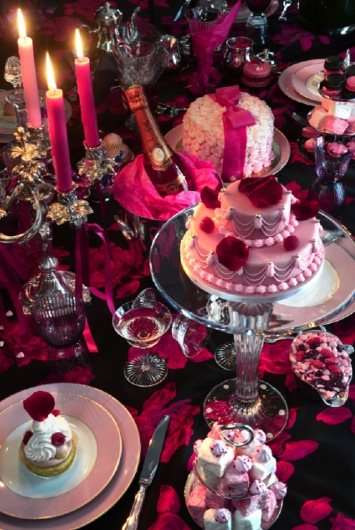 Na središtu se nalazi sto iz 1920. godine, specijalno dizajniran za Jeanne Lanvin, preko koga su prebačeni šik stolnjak i noseći modeli iz Lanvin zimske kolekcije. Poslastice su tu kao ukrasi, mahom u tonovima roze i fuksije.