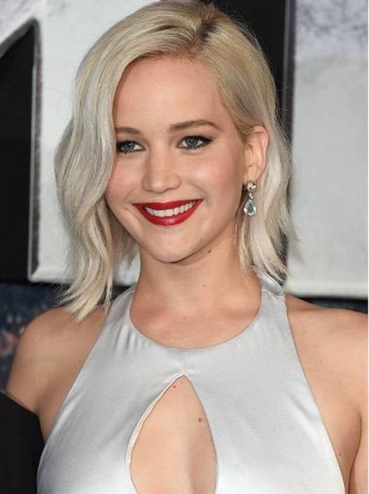 Jennifer Lawrence nosi tek primetan izrastak, ali dovoljno efektan da pepeljasto plava boja ne izgleda prenaglašeno.
