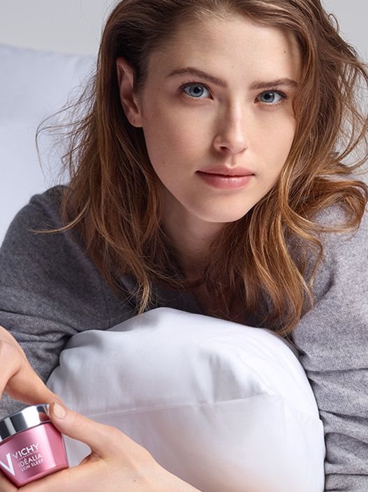 Vichy donosi kompleks aktivnih sastojaka koji ciljano deluju na cikluse obnavljanja kože tokom noči: Vitamin B3 + obnavljajuća ulja (podržavaju zaštitnu funkciju), LHA (poboljšava piling), glicirizinska kiselina + hijaluronska kiselina (diferencijacija i reorganizacija ćelija), KOFEIN (stimuliše mikrocirkulaciju). Klinički dokazano poboljšanje kvaliteta kože čak i kod žena koje spavaju loše ili nedovoljno: koža nakon buđenja izgleda popunjenije, odmorno, sveže i blistavo, kao nakon dobro prespavane noći.