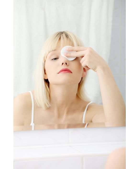 Svakovečernje trljanje kože, bez obzira da li se radi vatom, tupferom, četkom, frotirom ili plastičnim aplikatorom ne samo da razvlači kožu više nego što joj prija nego i: mehanički erodira zaštitni, hidrolipidni, sloj kože, uništava male krvne sudove i tako dolazi do dodatnih iritacija. Tanka koža oko oka trpi još veći stres i brže se i više oštećuje.