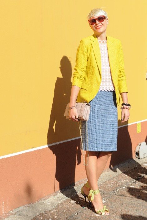Na reviji J. Mendela, prvo je natapkala nude ruž oko oka kao bazu, a zatim je preko nanela braon krejon. „Onda sam sve razmazala prstom, da bi izgledalo kao da je u stvari ostatak šminke. Tako se dobija definicija, ali bez puno težine.“