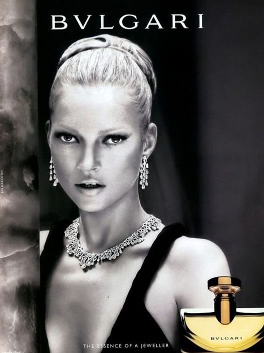 Elegantna dama sa zalizanom kosom skupljenom u punđu, dugim trepavicama i dijamantskim visećim minđušama za Bvlgarijev "Rose Essentielle"; potpuna transformacija u dugukosu zavodnicu sa tamnim make-upom, odevena u crni korset sa halterima za čuveni "Opium" Yves Sint Laurenta; naga u ovaj put potpuno prirodnom izdanju, mokre, zalizane kose za "Obsession fom men" Calvina Kleina.