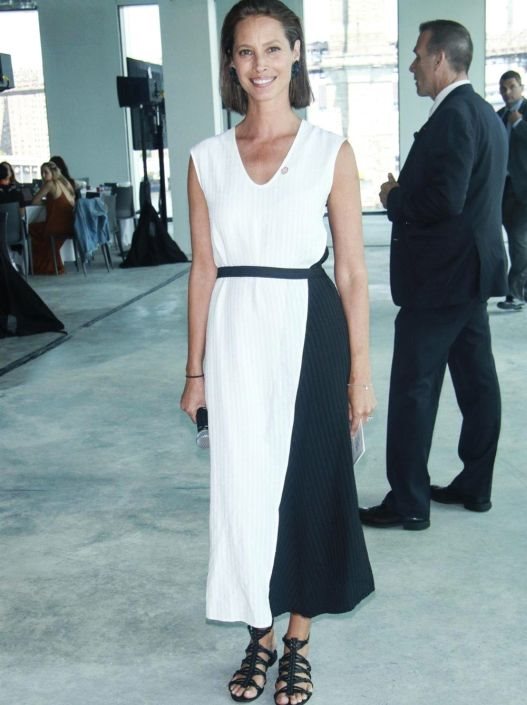 Kao jedna je od retkih modnih zvezda koja dostojanstveno stari i ne zamara se ponekom borom na licu, Christie Turlington svoju prirodnu lepotu naglasila je gotovo neprimetnom šminkom, a zalizana verzija bob frizure, upečatljiv par crnih minđuša i ravne sandale, koje stižu kao moderna verzija rimljanki, poslužile su u stilizovanju elegantnog modela haljine.