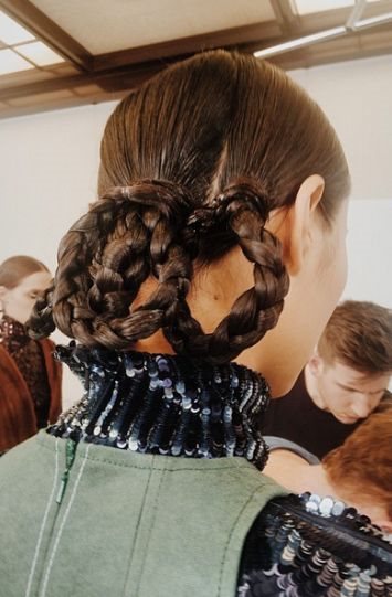 Čovek koji uspeva da objedini creepy momenat sa kul i lepim, ovoga puta je u sferi make up-a inspirisan geomterijom, oči svih modela naglasio s dve paralelne linije uz pomoć ajlajnera, oblikujući ispekidani kvadrat po sredini oka. Scarry dolls? Pa, tu negde. Ovakav način šminkanja očiju, Peter je finiširao neutralnim puderom i nude usnama pre kojih je nanesen samo mat balzam.