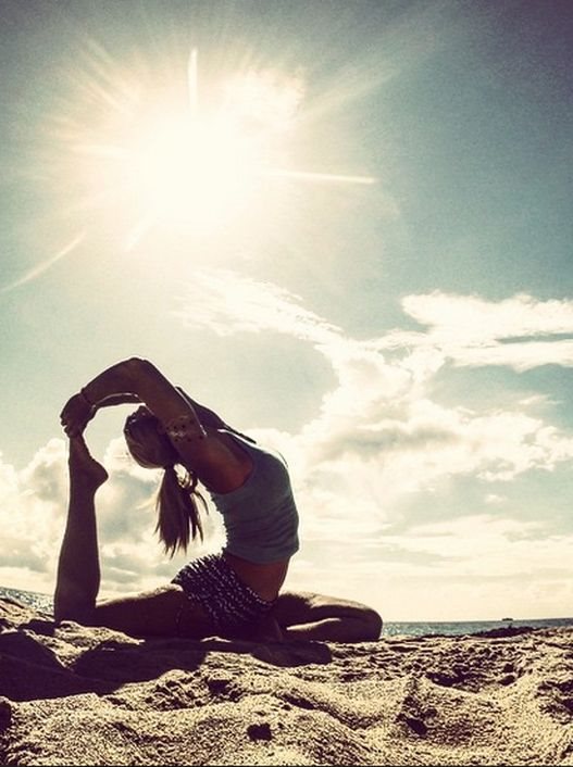 Sarah pokazuje vinyasa, hasa i power jogu, a oni su prikladni za drugi i napredni nivo.