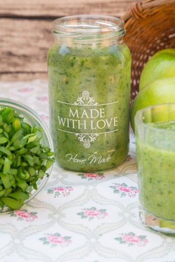 Dobro operite zeleniš, oljuštite avokado i isecite ga na kockice. Prvo umešajte sve sastojke sem meda i đumbira blenderom, zatim dodajte med i đumbir, pa mešajte još malo.