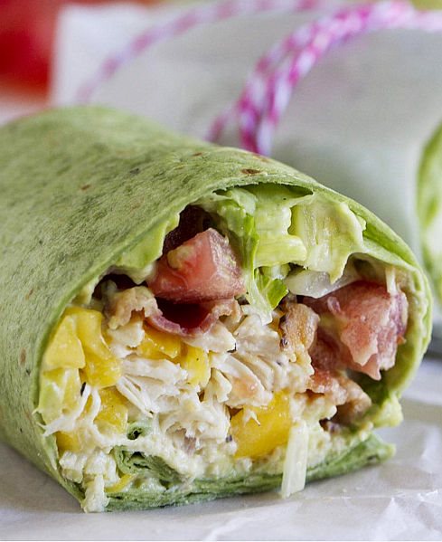 Stavite piletinu u veliku posudu, a zatim posolite i pobiberite. Dodajte mango, tri kašike majoneze i sok od limete. Uklonite košticu i koru avokada i tako očišćenog ga stavite u posudu, a onda uz pomoć viljuške pretvorite u kašastu smesu. Začinite solju i biberom, a zatim umešajte preostale tri kašike majoneze. Na tortilju stavite jednu četvrtinu avokado smese, zatim četvrtinu salate po sredini, četvrtinu pardajza i na kraju četvrtinu piletine. Presavijte tortilju s obe strane i smotajte je kao burrito. Za lepši izgled prerežite svaku tortilju na pola.