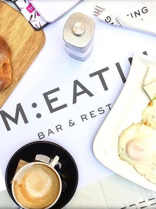 Internacionalni naziv bar&restaurant otkriva samo deo onoga što čovek želi kad uđe u lokal u kom se služe hrana i piće. Baš zato, magnetični naziv M:eating mnogo je bliži onome što najstrastveniji konzumenti života traže: odlična klopa i još bolja ekipa - meeting&eating. A za one sklone odgonetanju tu je i skrivena poruka: i pored respektabilne ponude raskošnih salata koje jednako naručuju vegani, devojke na dijeti i orni nagruvani momci, u imenu je šifra najmoćnijeg oružja ovog mesta: meat.