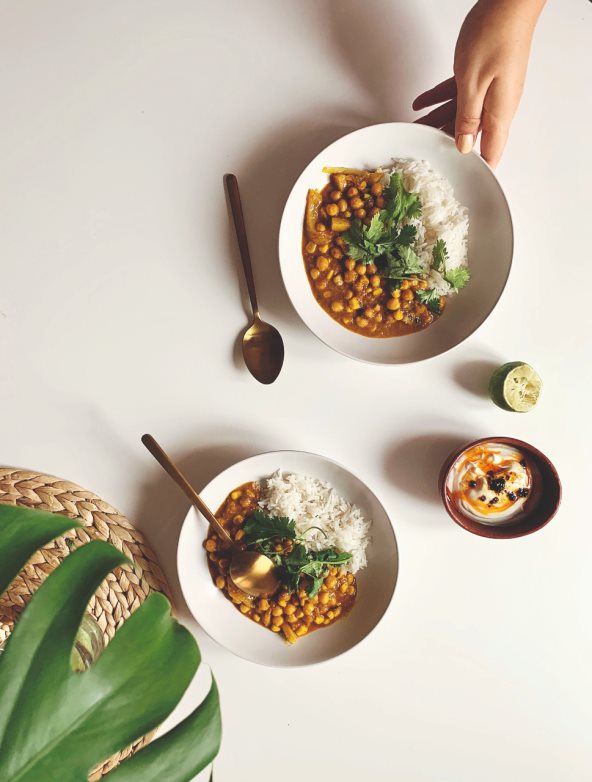 • Skuvati basmati pirinač: 1 šolju od 2 dl pirinča, preliti sa malo manje od 2 iste šolje ključale vode. Staviti na jaku vatru, poklopiti i kad provri smanjiti vatru na minimum, kuvati oko 15 – 18 minuta. Razbarušiti viljuškom. Servirati kari sa pirinčem, posut listovima korijandera i grčkim jogurtom (opciono prelivenim čili uljem).