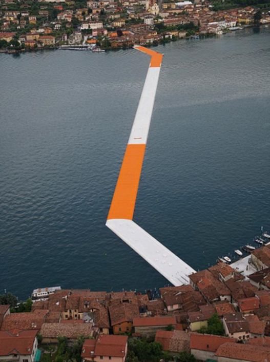 Reč je o projektu imena "The Floating Piers" poznatog bugarskog umetnika Christoa. Naime, on je malo ostrvo San Paolo usred jezera povezao svojevrsnim žutim mostom i to u dva smera s kopnom, i time na neki način omogućio ljudima da tehnički "hodaju po vodi".