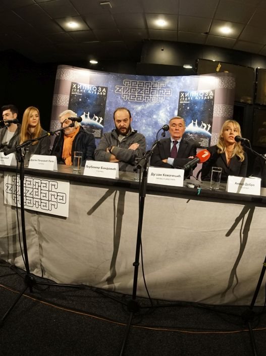 Prošle nedelje u Zvezdara teatru je održana konferencija za medije povodom novog komada Dušana Kovačevića "Hipnoza jedne ljubavi". Na konferenciji su govorili Dušan Kovačević, iz ugla pisca i reditelja i glumci: Ljubomir Bandović, Anica Dobra, Nina Janković, Uroš Jakovljević i Ivan Mihailović.