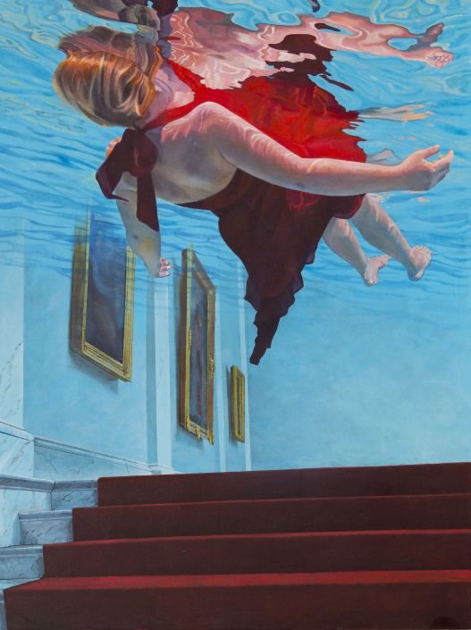 Umetnica kombinovanjem tri motiva kojima gradi prostor slike - vode, raskošnog enterijera i usamljene figure, posmatrača sigurnom rukom vodi u likovnu naraciju koja polazi od vidljive realnosti. Služeći se realizmom i višeznačnošću, Ivana Živić postiže začaranu i poetsku atmosferu slike koju prisustvo vode naglašava svojim višestrukim simboličkim značenjima.