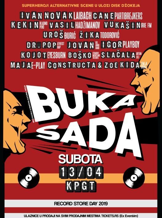 BUKA!SADA! okuplja neka od najzvučnijih frontmenskih imena iz regiona koji će - u jednoj noći, nastupiti u ulozi disk džokeja.