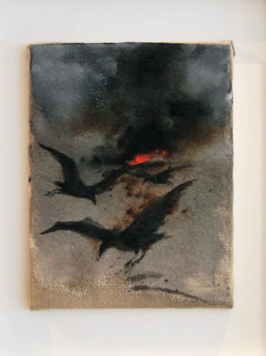 Veličković se u bezličnosti tame kretao jasnim pokretima ka poruci koja je provirivala iz svakog zloslutnog pogleda gavrana, ukazujući na samoubilačku prirodu modernog čoveka i surovost koja vodi u neumitnu propast.