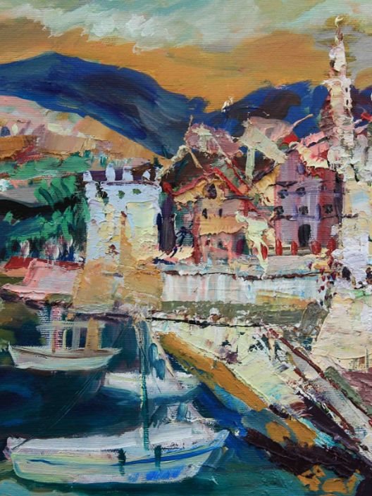 Ne bavi se čovekom kao pojedincem ili osobom, angažovanim temama, niti savremenim fenomenom otuđenosti. Prateći svoju slikarsku intuiciju, umetnost sagledava temu sa likovnim pozicijama, u formi savremenog shvatanja vodeće, koja oslikava vibracije života urbanog jezera - najčešći svoj „večitog grada“ na uskom reku, osećaće svoje osećaj.
