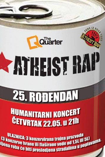 Novosadski pank-rokeri Atheist Rap tokom ove godine nastupima po celom regionu proslavljaju jubilej 25. godina postojanja i rada. Veliki završni koncert jubilarne turneje je bio planiran za kraj oktobra u Novom Sadu. Međutim, usled elementarne nepogode koja je poslednjih dana pogodila ove prostore bend je odlučio da koncert u Novom Sadu održi na dan kada obeležavaju 25 godina od svog prvog nastupa (U Beogradskoj kapiji, u Petrovaradinu 22.05.1989), koji se vodi kao zvanični rođendan grupe.