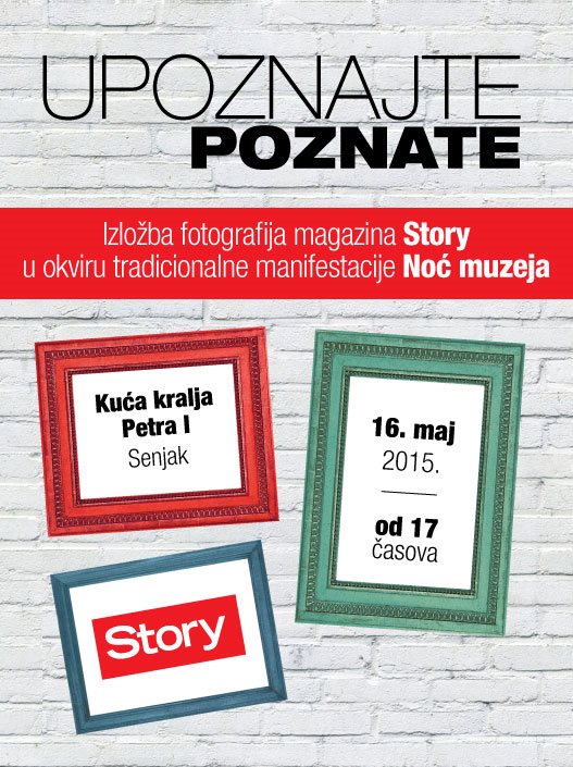 U okviru manifestacije Noć muzeja, koja se ove godine održava jubilarni deseti put, magazin Story imaće prvu samostalnu izložbu fotografija pod nazivom Upoznajte poznate.