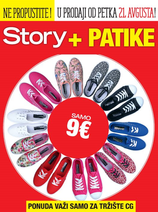 Novi broj magazina Story za teritoriju Crne Gore ponudiće hit patike ovog leta u više od 20 različitih boja i dezena po super ceni od devet evra.