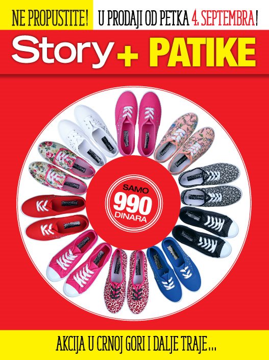 Paket Story + trendi patike naći će se u prodaji od petka 4. septembra. Popularne dame Anđelka Prpić, Tamara Paunović i Aleksandra Gudelj su već izabrale svoje favorite među patikama, izaberite i vi svoj omiljeni par.