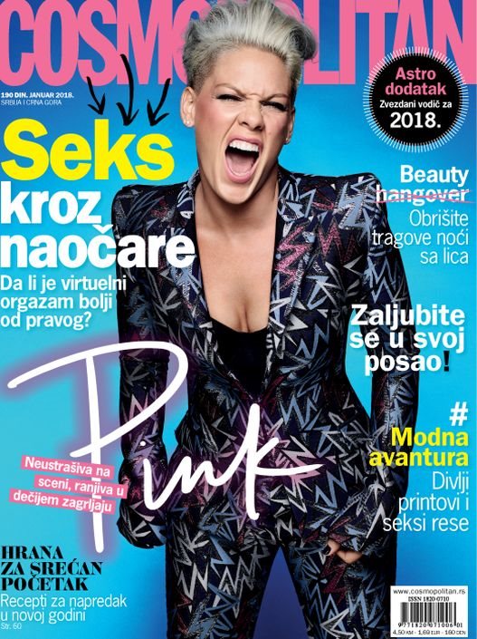 Naslovnu stranu januarskog izdanja Cosmopolitana krasi PINK, žena koja već 20 godina konstantno vlada svetskim muzičkim listama i koja će definitivno probuditi buntovnicu u vama pred početak još jedne sjajne godine!
