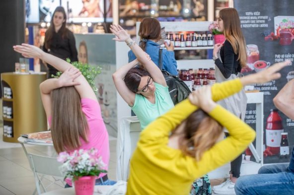 Ovaj šoping je bio drugačiji, jer su mnogi posetioci Mercatora naučili kako da vežbaju jogu na stolicima, otpuste stres i kada su na poslu, primene tehnike disanja i učine nešto dobro za svoje telo i duh. Joga instruktorka Maja Milosavljević iz Holističke akademije MAYA pokazala je posetiocima kako da uz pomoć jednostavnih poza mogu da vrate svoje telo u stanje harmonije i apsolutne ravnoteže.