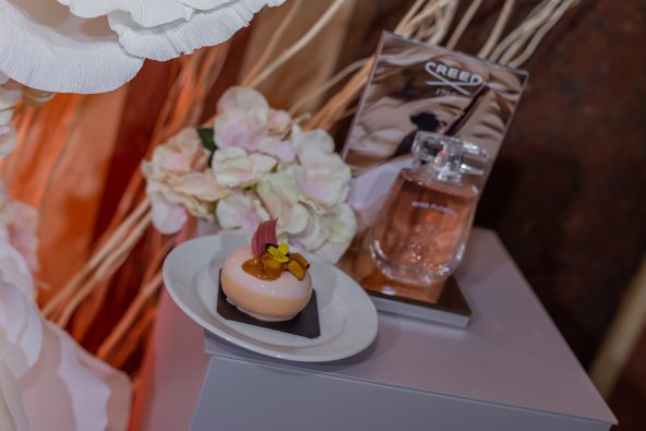 Prostor restorana bio je ispunjen toplim cvetnim i voćnim mirisnim notama najnovijeg remek-dela parfemske kuće Creed. Kroz baletski performans primabalerine Tatjane Tatić i Nicole Bianco gosti su imali priliku da na autentičan način dožive inspiraciju kreatora parfema Wind flowers, a kroz recepturu, samo za ovu priliku, kreiran je kolač kao omaž parfemu, u čijem su ukusu svi uživali. U daljem nastavku zabavnog dela programa, gosti su bili prepušteni laganim notama gudačkog kvarteta.