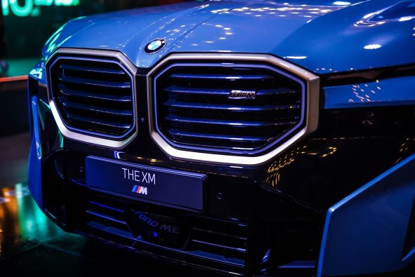 Prvi ikada BMW XM ima podeljene farove, zlatni okvir prednje maske sa osvetljenjem i velike usisnike za vazduh u frontalnom delu, kao i točkove od 21 inča u standardnom paketu opreme (moguće je poručivanje točkova do 23 inča).