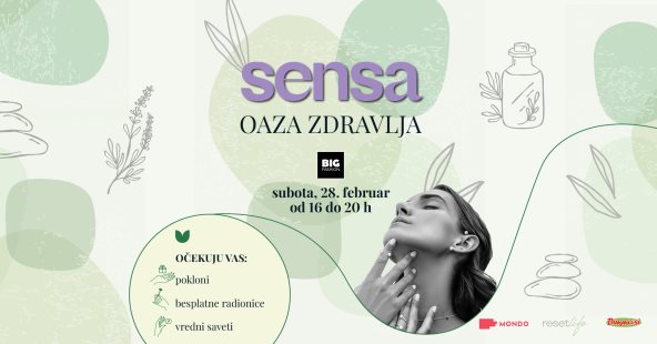 Proleće je iza ugla, a to nas inspiriše da probudimo harmoniju tela i duha. U susret najlepšem godišnjem dobu, web portal Sensa i Big Fashion šoping centar u Višnjičkoj 84 organizuju događaj SENSA Oaza zdravlja u subotu, 28. februara 2026. godine, od 16 do 20 časova.