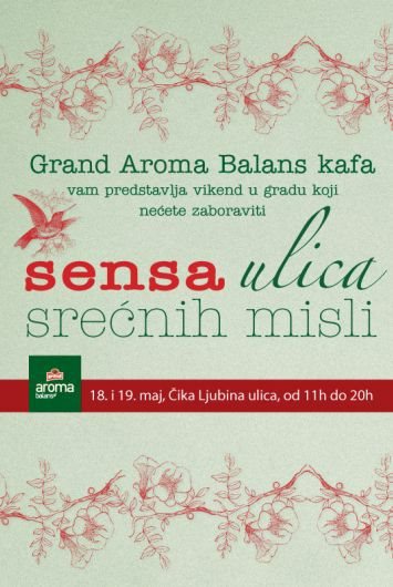 Manifestacija Sensa Ulica srećnih misli biće održana u Čika Ljubinoj ulici u Beogradu, u delu kod Narodnog muzeja od 11 do 20h. Bogat program i brojna iznenađenja očekuju posetioce tokom oba dana.